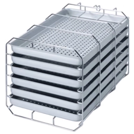 Wykorzystaj pełny potencjał swojego autoklawu Vacuklav 24 BL+ dzięki bardzo długiemu stelażowi C na tace narzędziowe. Ten stelaż został specjalnie zaprojektowany, aby umożliwić załadowanie całej długości komory autoklawu, co maksymalizuje ilość sterylizowanych narzędzi w jednym cyklu.