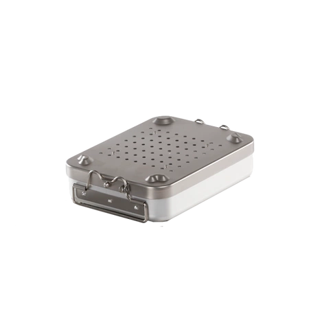 Zgodnie z normą DIN 58953, część 8, po udanej sterylizacji i wysuszeniu, opakowane instrumenty mogą być przechowywane do 6 miesięcy, pod warunkiem, że są przechowywane w warunkach zabezpieczonych przed kurzem (np. w szafce lub w szufladzie). Perforowana pokrywa i dno kontenera, wraz z jednorazowymi filtrami, skutecznie chronią narzędzia przed zanieczyszczeniami, zapewniając ich bezpieczeństwo i sterylność.