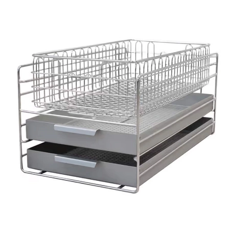 Zmaksymalizuj pojemność i elastyczność swojego autoklawu Cliniclave 45D/45MD dzięki funkcjonalnemu stelażowi (ME04522). Ten wszechstronny stelaż umożliwia organizację przestrzeni w komorze sterylizacyjnej, pozwalając na umieszczenie 4 tacek lub 2 koszy narzędziowych, w zależności od potrzeb.