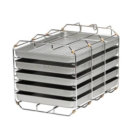 Uchwyt A Plus z przesuwanymi klipsami to idealne rozwiązanie do autoklawów o głębokości komory 45 cm, takich jak Vacuclave 123 i 323. Ten praktyczny stelaż umożliwia optymalne wykorzystanie przestrzeni w komorze autoklawu, dzięki czemu można w nim umieścić do 5 standardowych tac (ME00230) lub do 3 kaset MELAstore 100 (01181).